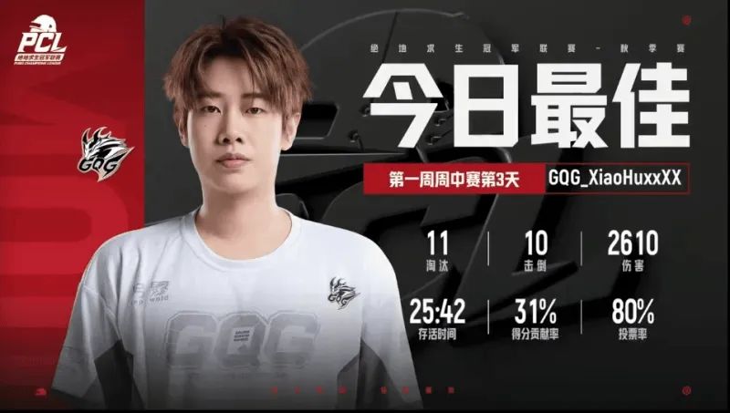 虎扑09月05日讯 PCL秋季赛周中赛第三日最佳选手:XiaohuxxXX四票当选